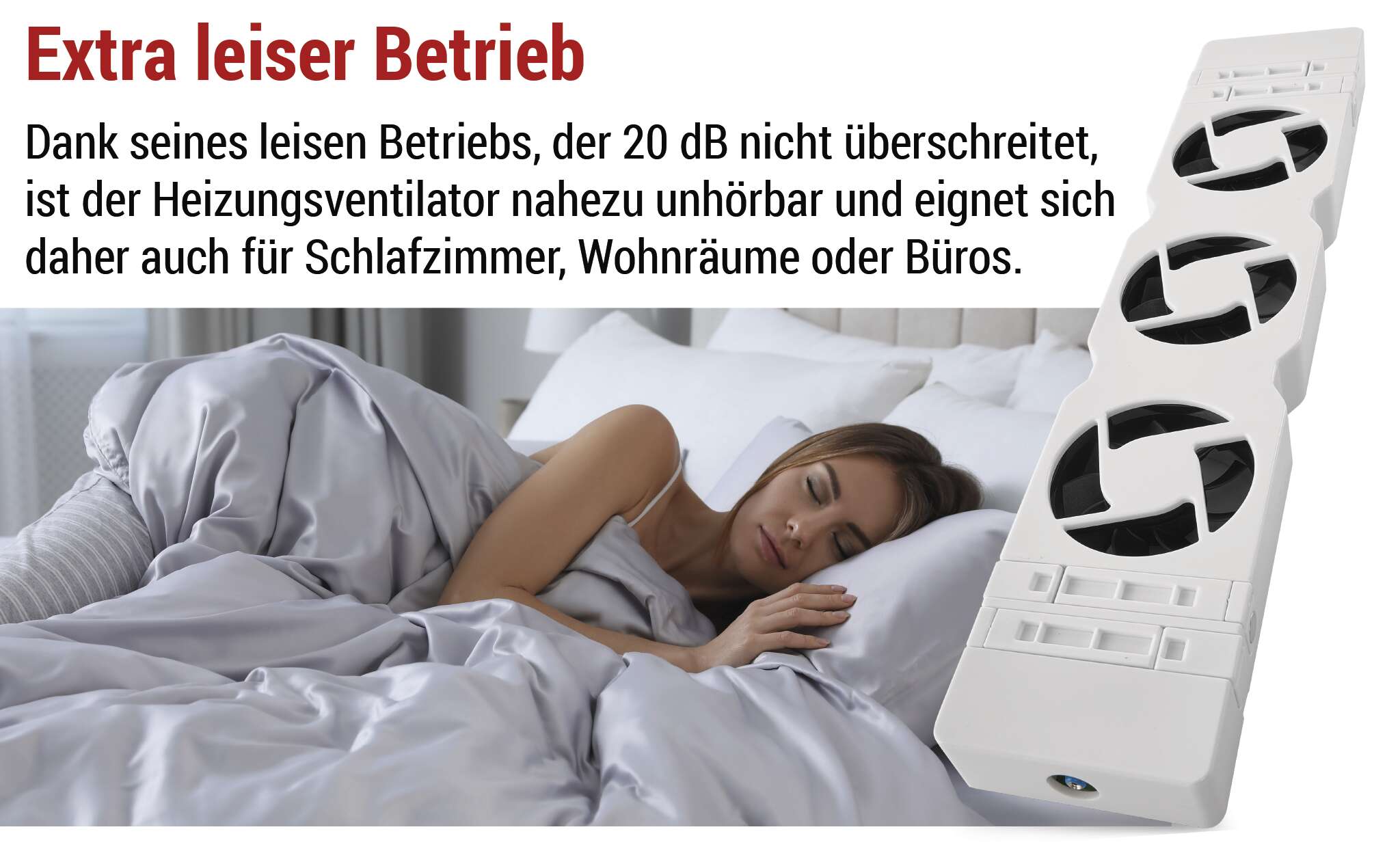 Ermöglicht eine schnellere und gleichmäßigere Wärmeverteilung im Raum, wodurch der Bedarf an hohen Temperaturen am Thermostat reduziert wird. Ein großer Helfer für effizientes Heizen und Energieeinsparung.