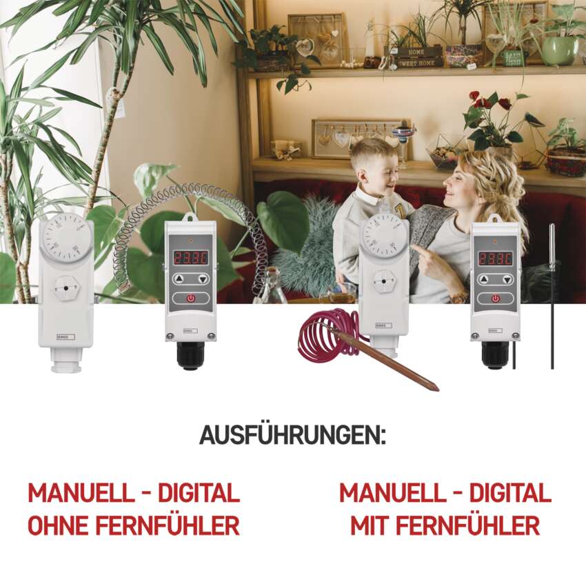 | Thermostattyp | kabelgebunden, Anlege |