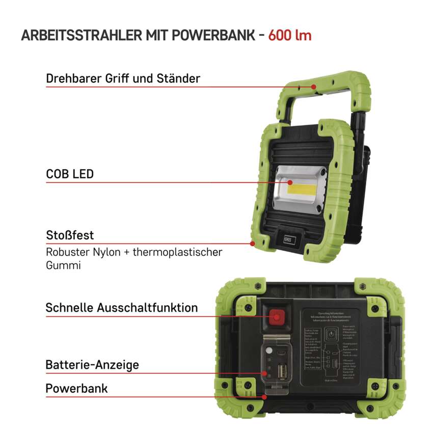 Aufladbarer COB LED-Strahler P4534, 600 lm, 3000 mAh