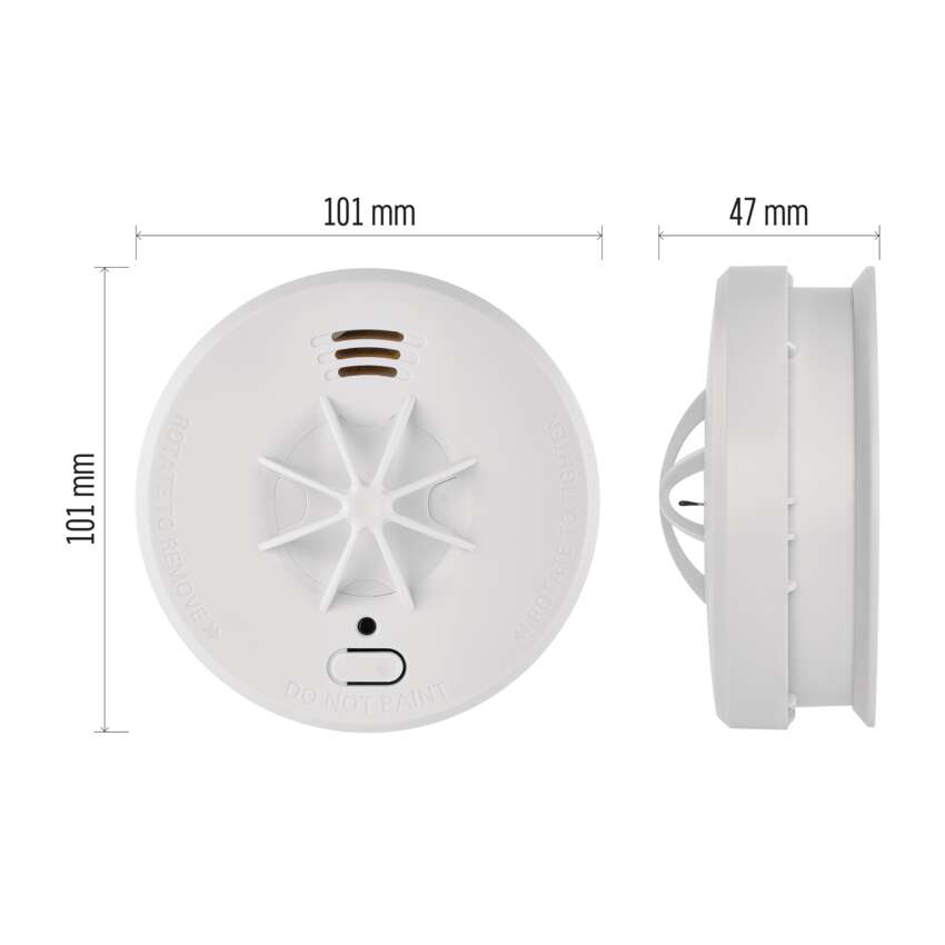 Sichern Sie Ihr Zuhause mit einem Feuermelder mit einem speziellen System, das es nicht erlaubt, ihn ohne Batterie zu installieren. Das Gerät wird immer bereit sein, auf potenzielle Bedrohungen zu reagieren und Ihnen ständigen Schutz zu bieten.