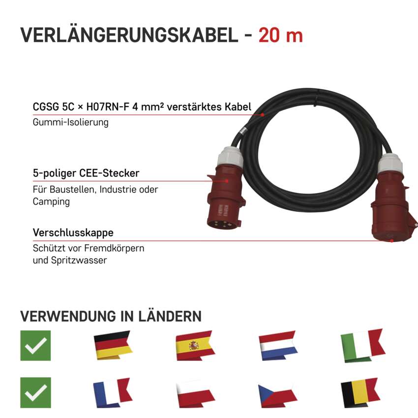 CEE Verlängerungskabel 5x32A, 20m