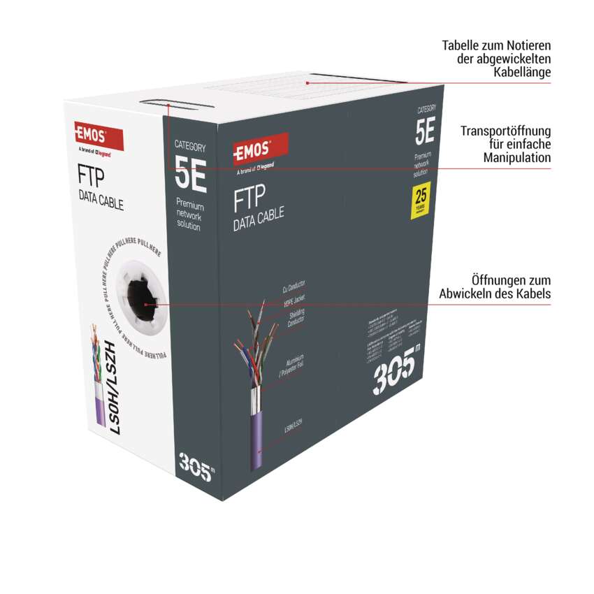 | Kennzeichnung des Kabels | FTP Cat5E LSZH 1 – 305 m |