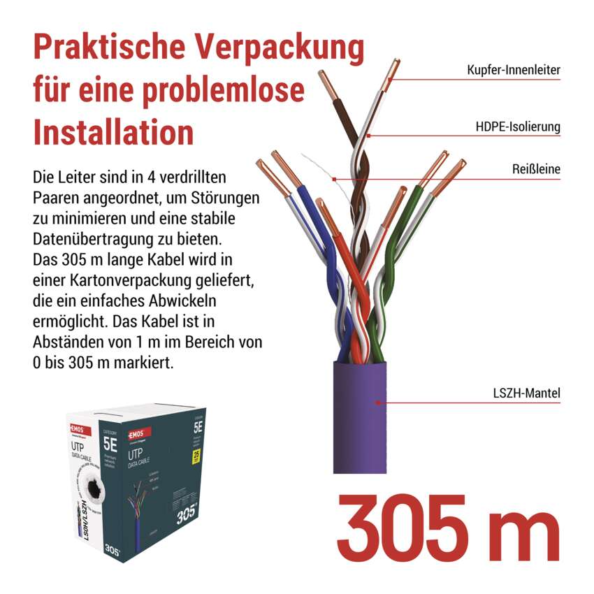 Powered by Smartsupp Datenkabel UTP CAT 5E LSZH, 305m | EMOS DE