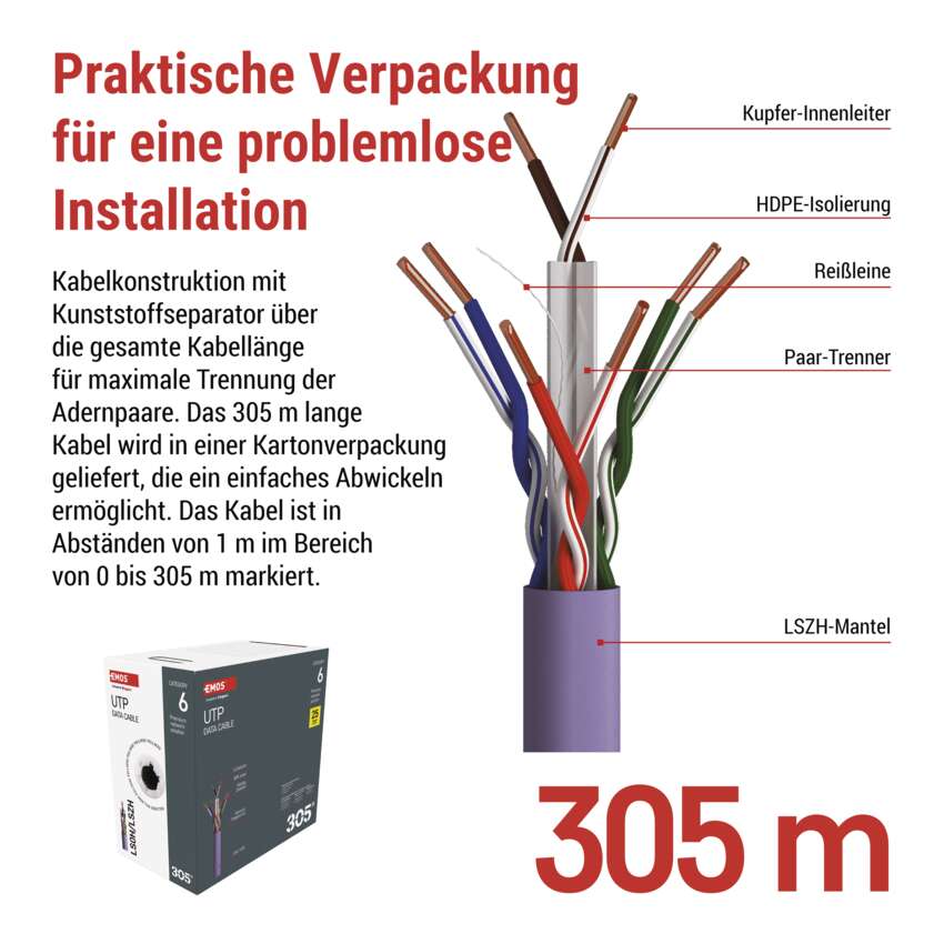 | Kennzeichnung des Kabels | UTP CAT 6 LSZH 1 – 305 m |