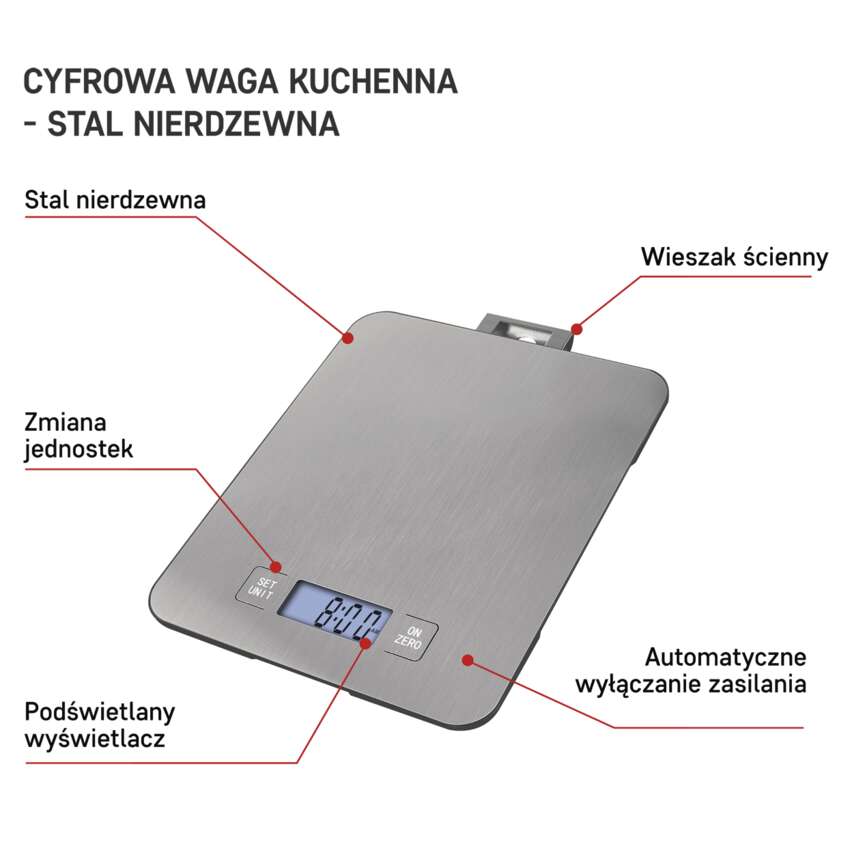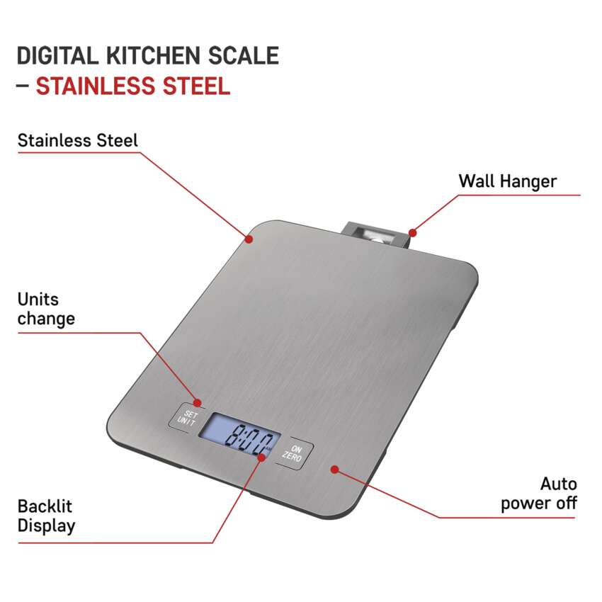 Die Küchenwaage kann schwere Lasten tragen und ist dennoch überraschend schlank und versteckt sich in jeder Schublade. Die geräumige Wiegefläche aus Edelstahl ist schön anzusehen und widersteht Kratzern und der Zeit. Sie wird Ihnen viele Jahre lang dienen und auf jeder Küchentheke gut aussehen. Die Edelstahloberfläche garantiert perfekte Sauberkeit auch beim Wiegen ohne Schale.