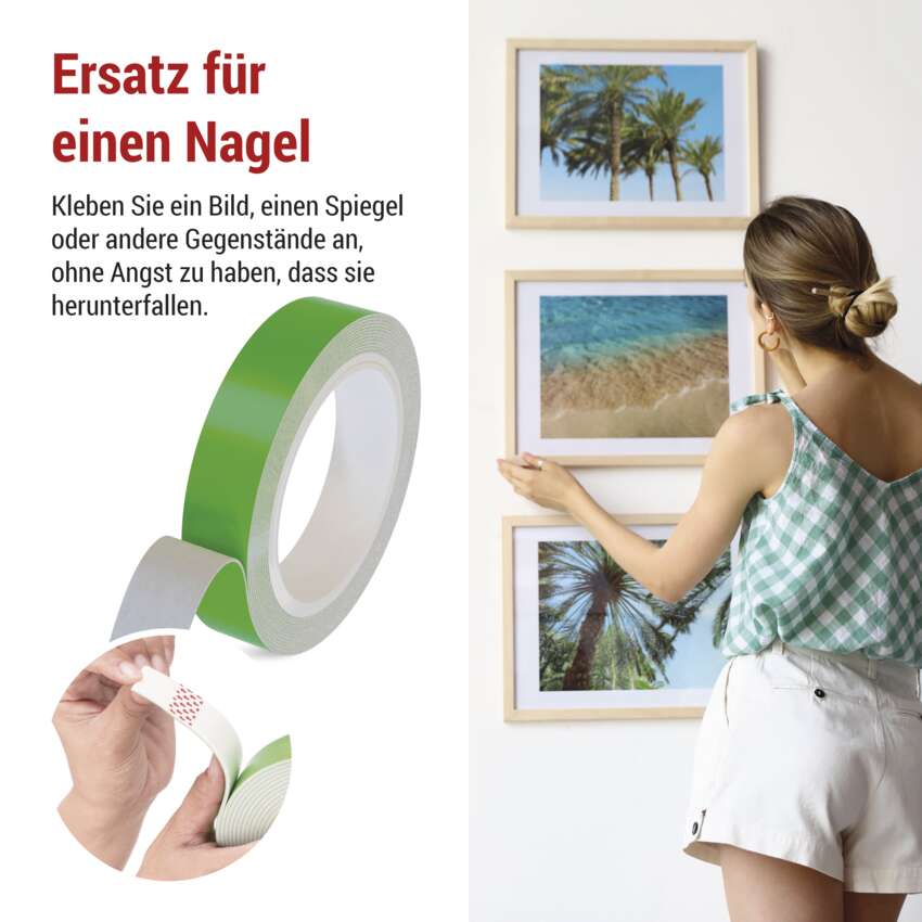 - Mit dem Schaumstoffband können Sie auch schwere Dinge ohne Angst vor dem Herunterfallen aufhängen