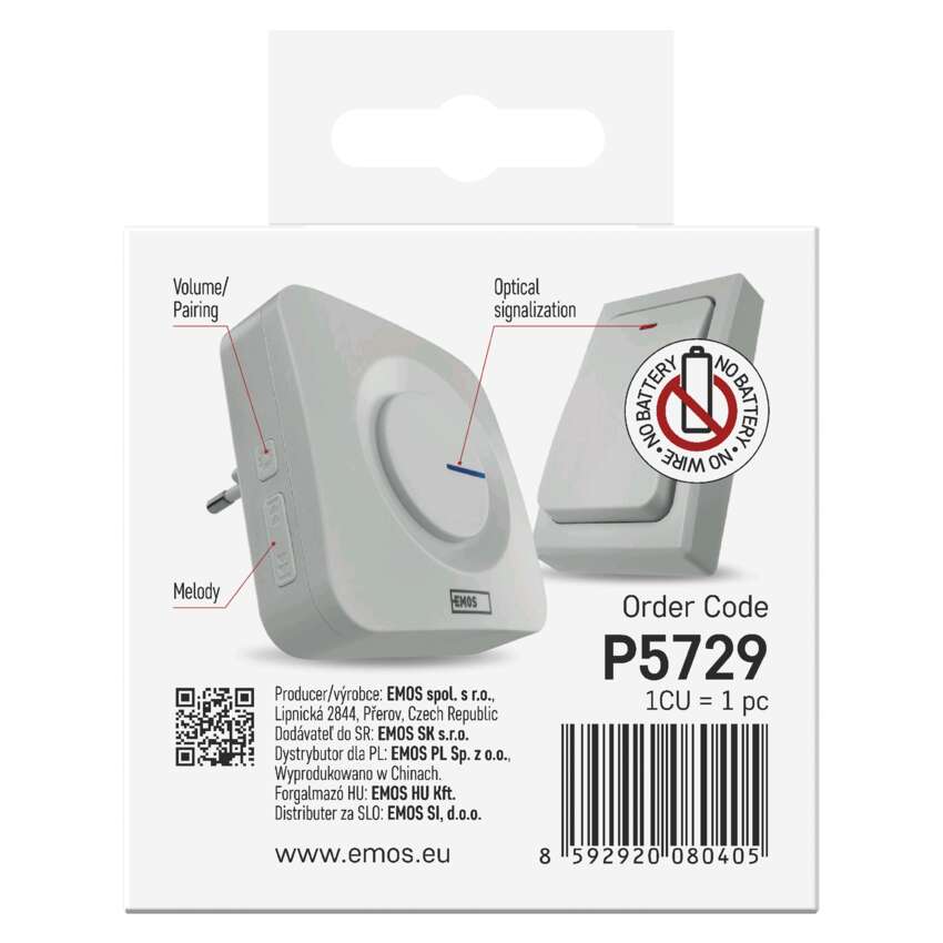 Suchen Sie eine Türklingel, die schnelle Installation, große Reichweite, Wartungsfreiheit und auch hohe Zuverlässigkeit bietet? Das EMOS P5729 Set aus batterielosem Taster und Türklingel bietet alles zusammen: Bis zu sechs Taster können mit der Türklingel gekoppelt werden und sind auch einzeln erhältlich.