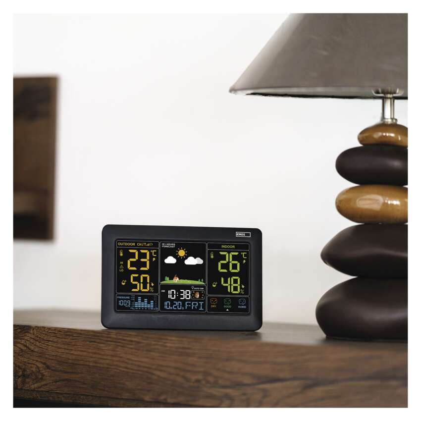 Sie wissen, dass dieses Gerät in Ihrem Zuhause großartig aussehen wird. Der schwarze Rahmen verleiht der Wetterstation einen zeitlosen Look und die Möglichkeit, sie an die Wand zu hängen oder auf einen Tisch zu stellen, fügt sich nahtlos in jedes Interieur ein.