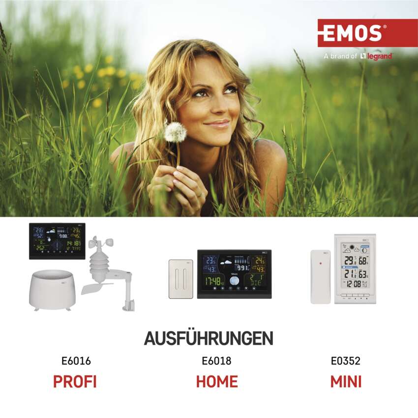 Mögliche zusätzliche Sensoren | bis zu 3 Sensoren für Temperatur und Feuchtigkeit (E06018), 1 Anemometer (E06016) |