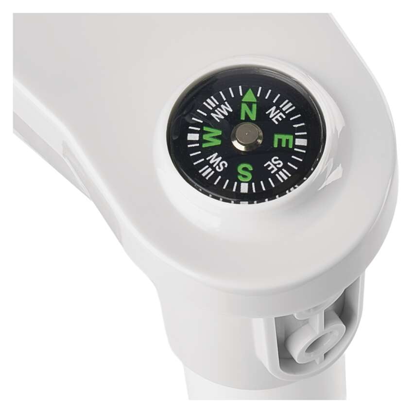 - Um eine korrekte Messung zu gewährleisten, müssen der Temperatur-/Feuchte-/Lichtsensor und der Niederschlagssensor höher über der Oberfläche (min. 1,5 m) auf einer horizontalen Fläche und entfernt von Gebäuden und Strukturen angebracht werden. Beide Sensoren müssen fest verschraubt sein, um Beschädigungen zu vermeiden. Schrauben Sie zuerst die Montageplatte auf eine ebene Fläche, dann schrauben Sie die Montagestange in die Montageplatte, an die Sie den Temperatur-/Luftfeuchtigkeits-/Lichtsensor schrauben werden. Der Wind muss den Windsensor aus allen Richtungen frei umströmen. Stellen Sie sicher, dass sich der Windrichtungsanzeiger und der Propeller zur Messung der Windgeschwindigkeit frei drehen können. Laut dem eingebauten Kompass muss der Nordpfeil (N) in Wirklichkeit nach Norden zeigen. Ansonsten wird die Richtung, aus der der Wind kommt, immer falsch angezeigt. Nachdem Sie einen geeigneten Standort ausgewählt haben, vergewissern Sie sich vor der Installation, dass sich die Hauptstation in Reichweite der Sensoren befindet. In bebauten Gebieten kann die Reichweite der Sensoren schnell abnehmen.