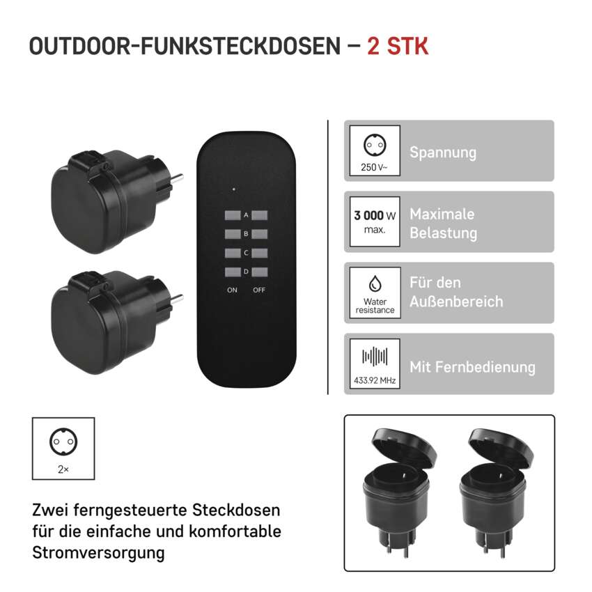 Funksteckdosen SCHUKO mit Fernbedienung, IP44