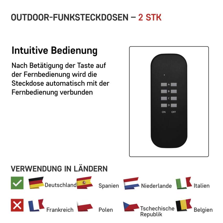 Produkt | Funksteckdosen Set, 2 Steckdosen + 1 Fernbedienung |