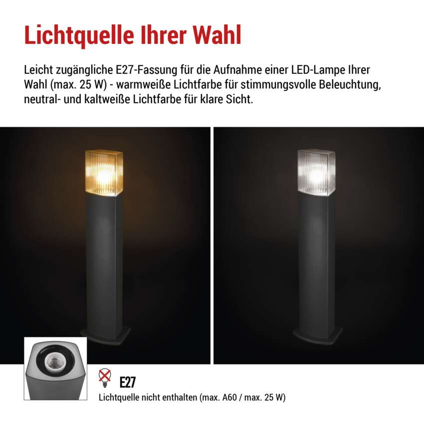 Garten-Pollerleuchte LANA, 15,4 x 13,3 x 75 cm, 1 x E27, 25 W