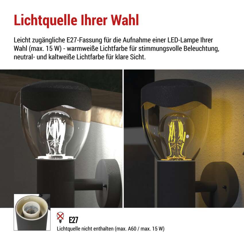 ✔ Wahlweise warm- oder kaltweiße Glühbirne