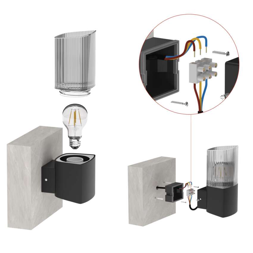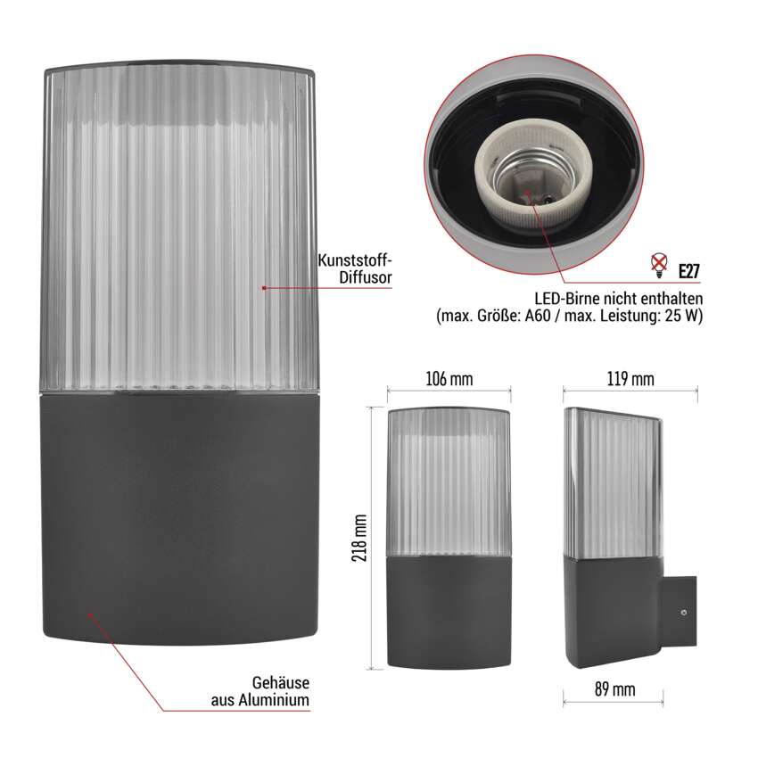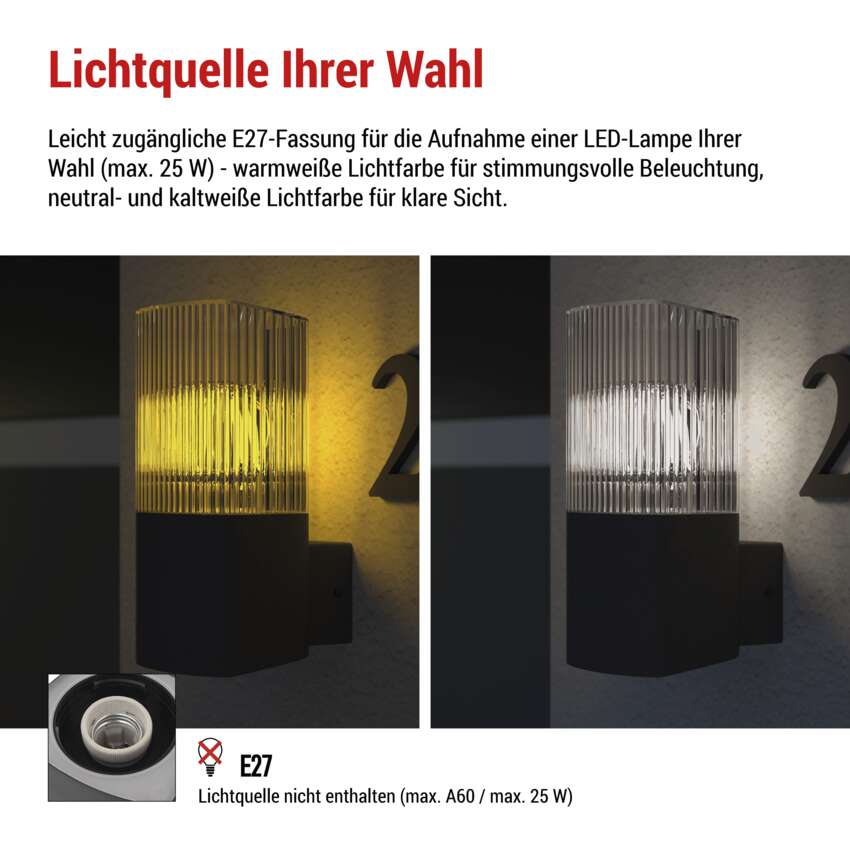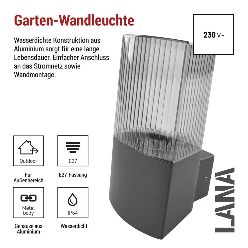 Garten-Wandleuchte LANA, 11,7 x 10,6 x 21,8 cm, 1 x E27, 25 W