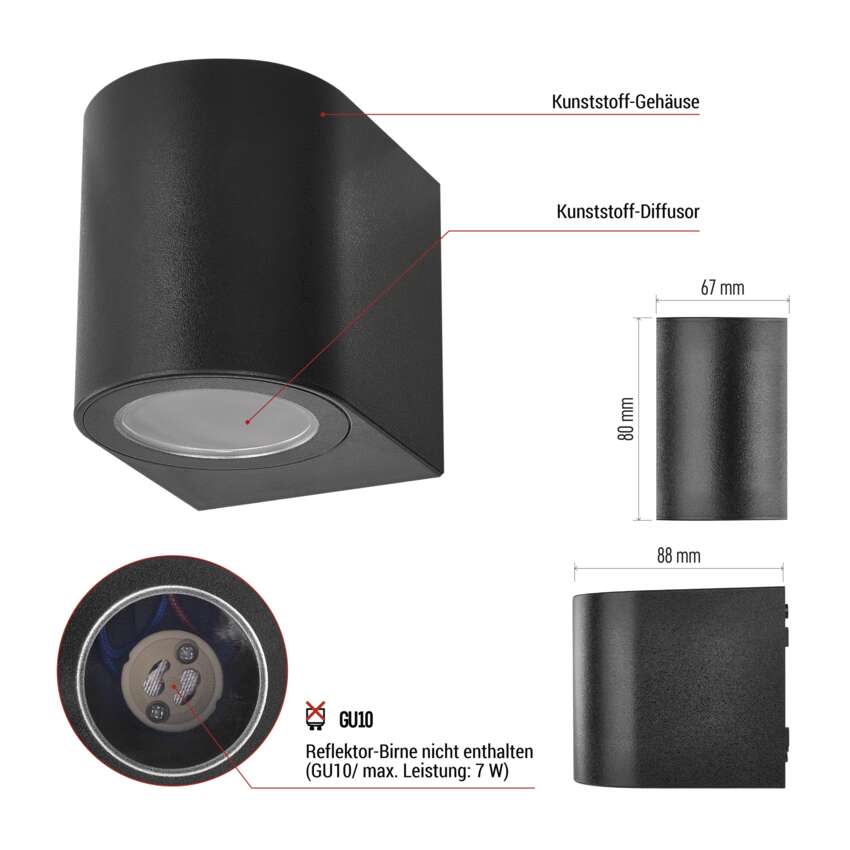 Garten-Wandleuchte OCULUS, 8,8 x 6,7 x 8 cm, 1 x GU10, 1× 7W