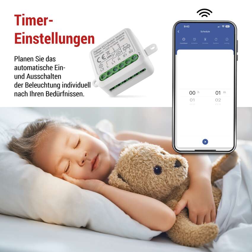 - Mit dem 2-Kanal-Modul können Sie zwei Stromkreise steuern, z.B. das Hauptlicht im Wohnzimmer und eine Lampe oder Deckenleuchte