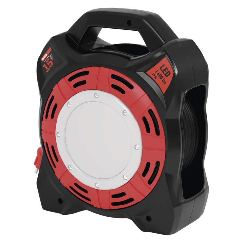 Eine spezielle Winde, die auch die Funktion eines Strahlers erfüllt? Ja, diese praktische Verlängerungsspule ersetzt tatsächlich zwei Teile auf einmal. Außerdem erspart sie Ihnen die Arbeit des Tragens und den Stauraum. Für den Beleuchtungskomfort sorgt das 20 W LED-Licht mit einer Leistung von schönen 1.600 lm. Der Reflektor strahlt ein kühles weißes Licht mit einer Temperatur von 6.500 K aus, das ideal für die Arbeit ist.