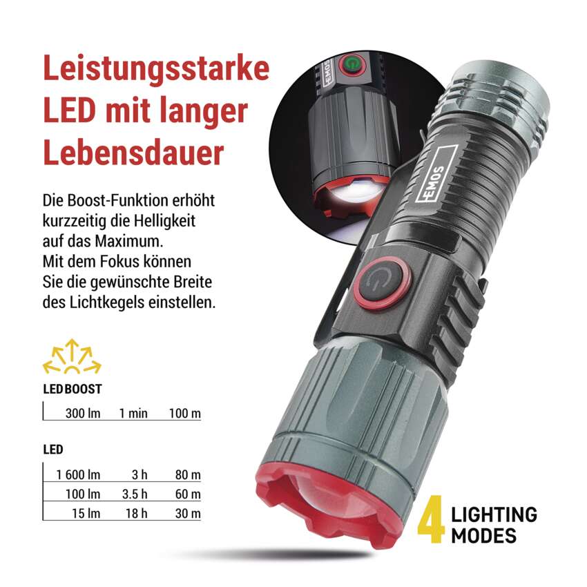 | Lichtmodi | LED BOOST, LED 100 %, LED 50 %, LED 10 % |
