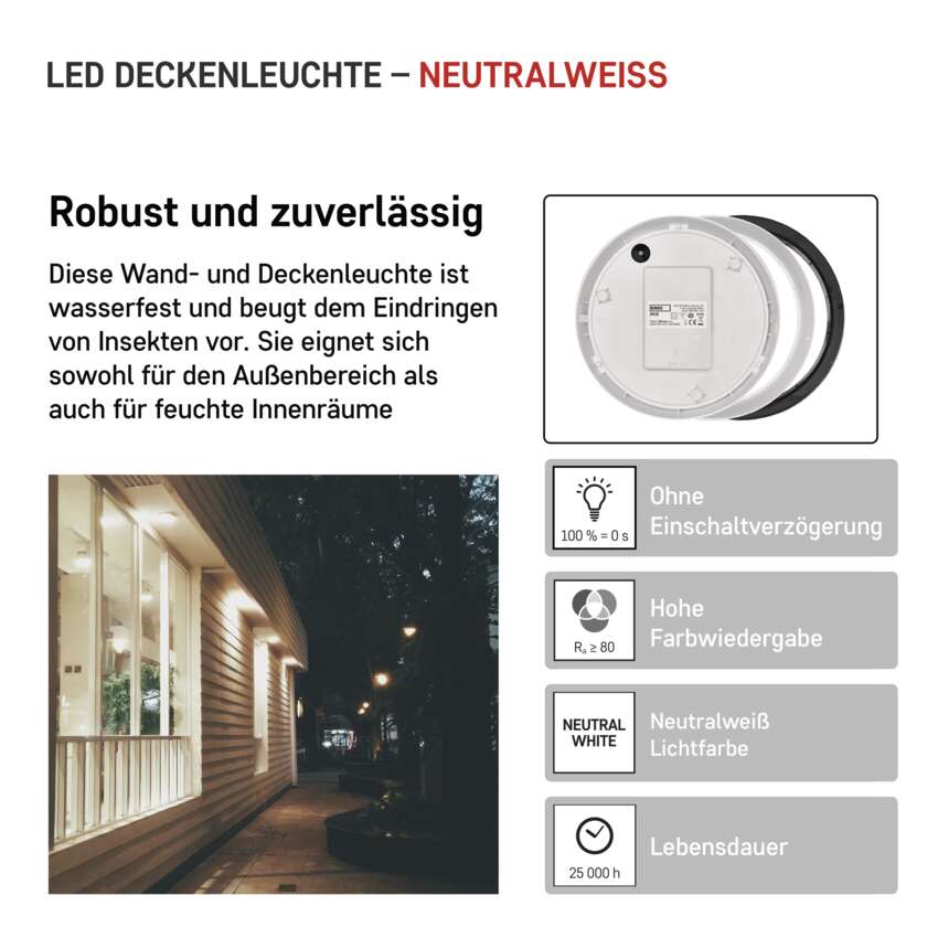 LED Deckenleuchte, rund, schw./w. 14W neutralweiss