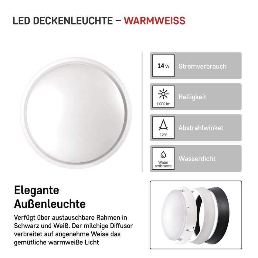 LED Deckenleuchte, rund, schwarz/weiss 14W warmweiss
