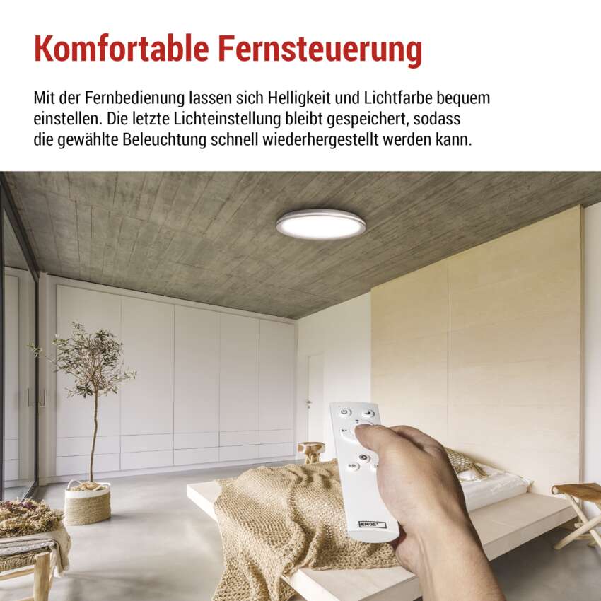 >Sie können ganz einfach zwischen warmem und kühlem Weiß umschalten und nahtlos dimmen, um die perfekte Atmosphäre für jeden Moment zu schaffen - von der ruhigen Abendruhe bis zur konzentrierten Arbeit. Und mit der Memory-Funktion können Sie Ihre letzten Einstellungen oder eine Lieblingsszene speichern, so dass sich Ihr Licht immer an Ihre Vorlieben anpasst. Die Fernbedienung macht den täglichen Gebrauch der Leuchte völlig intuitiv und bequem, und Ihr Raum erhält sofort das perfekte Ambiente.