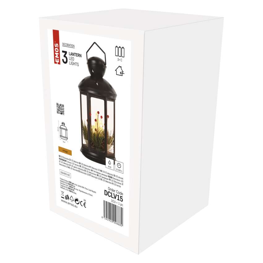 LED Deko – Weihnachtslaterne mit Kerzen, schwarz, 35,5 cm, 3x C, Innen, Vintage