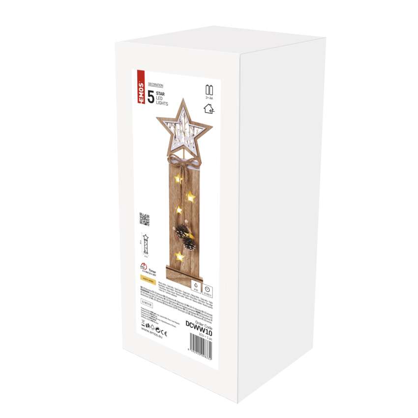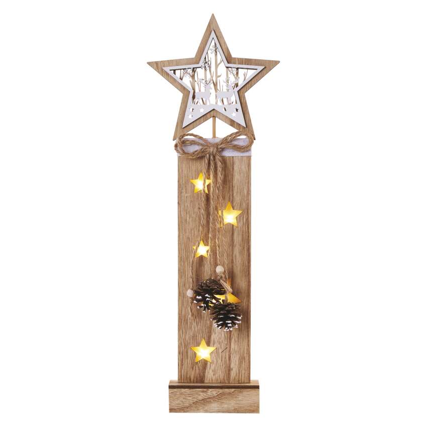 LED Holzdekoration – Sterne, 48 cm, 2x AA, Innen, warmweiss, Timer
