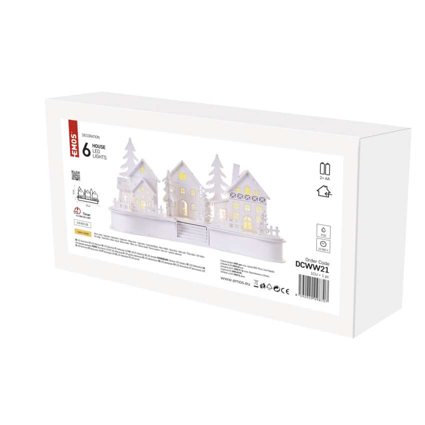 Powered by Smartsupp LED Holzdekoration weiß– Weihnachtsdorf, 16 cm, 2x AA, Innen, warmweiss, Timer | EMOS DE