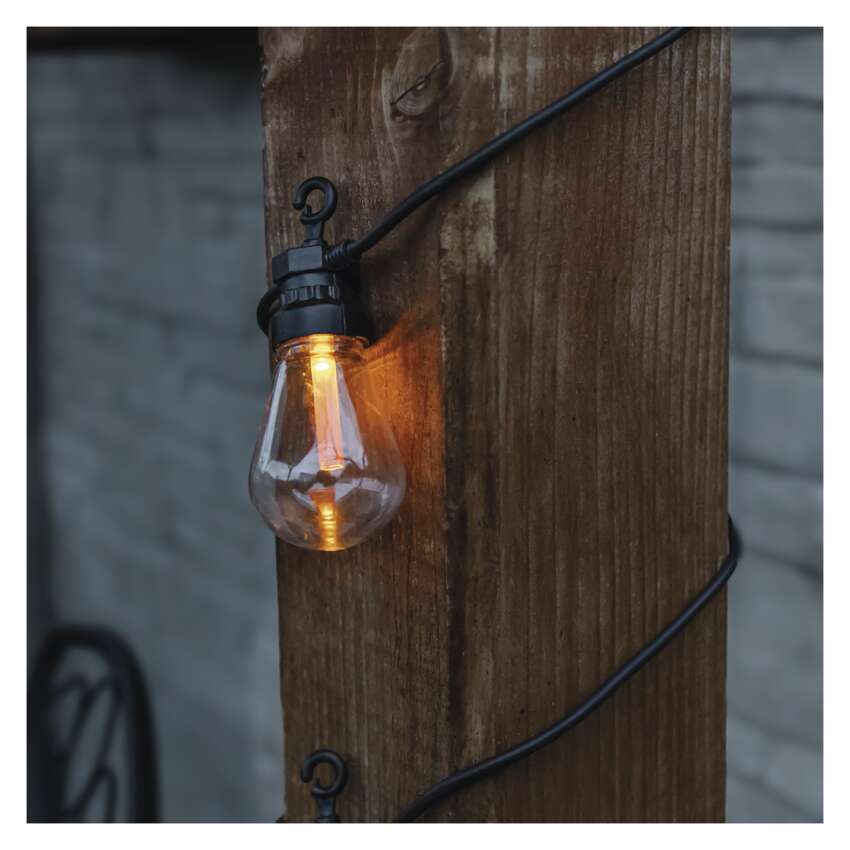 Sie planen eine Party oder Feier im Freien? Oder wollen Sie einfach nur Ihren Balkon stilvoll erhellen und im Schein dekorativer Lichter genießen? Dann ist unsere EMOS LED Solar Vintage Kette die ideale Wahl für Sie. Auf insgesamt 4,5 Metern finden Sie 10 Vintage-LED-Birnen, die eine unvergessliche Atmosphäre in jeden Raum zaubern. Sie beleuchten geschmackvoll und unaufdringlich Ihre Pergola, die Terrasse, den Balkon oder jede Ecke Ihres Gartens. Jede Glühbirne hat einen praktischen Haken zum Aufhängen, so dass es Ihnen überlassen bleibt, wie Sie die Glühbirnen positionieren. Die Dekoration wird von einem Solarpanel mit Strom versorgt. Wenn das Panel also ausreichend aufgeladen ist, können Sie sich darauf freuen, dass die Kette jeden Tag bei Sonnenuntergang ohne Ihr Zutun leuchtet.