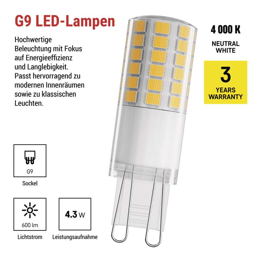 LED Lampe Classic JC / G9 / 4,3 W (48 W) / 600 lm / Neutral Weiß
