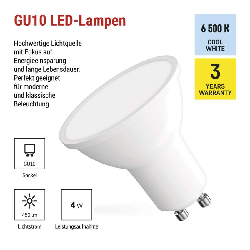 | Sockel (Befestigung der Glühbirne) | GU10 |