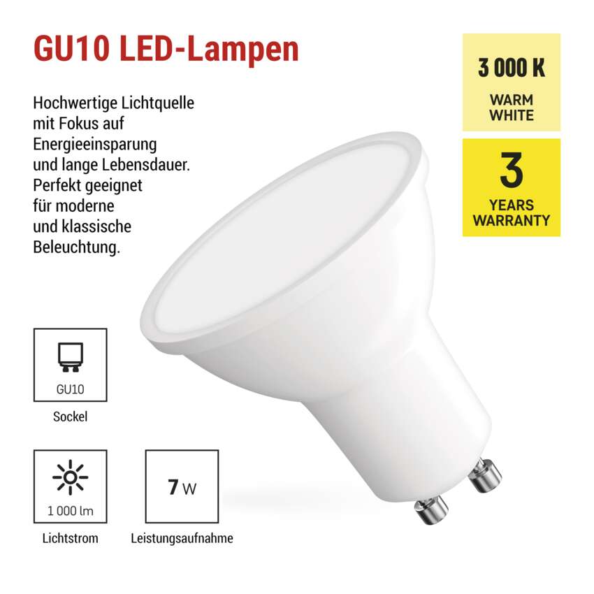 | Sockel (Befestigung der Glühbirne) | GU10 |