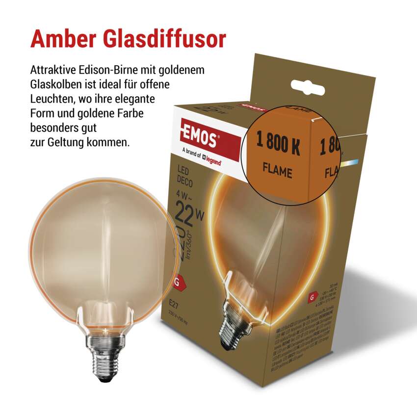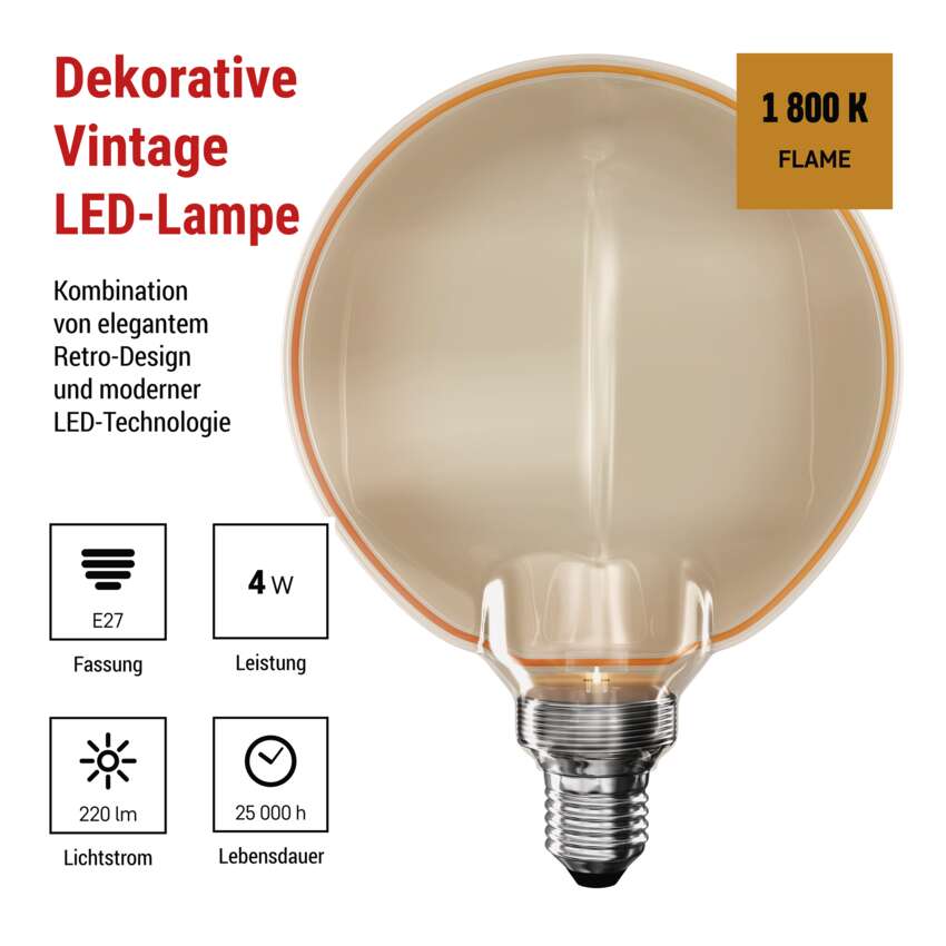 LED Lampe DECO G130OA / E27 / 4 W (22 W) / 220 lm / flame