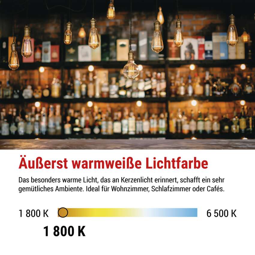 Entdecken Sie die Magie des warmen Lichts mit unseren stilvollen LED-Lampen, die moderne Energieeinsparung mit klassischem Design kombinieren. Mit einer Farbtemperatur von 1 800 K schaffen sie eine warme und gemütliche Atmosphäre, ideal für Ihr Zuhause und Ihre Geschäftsräume.