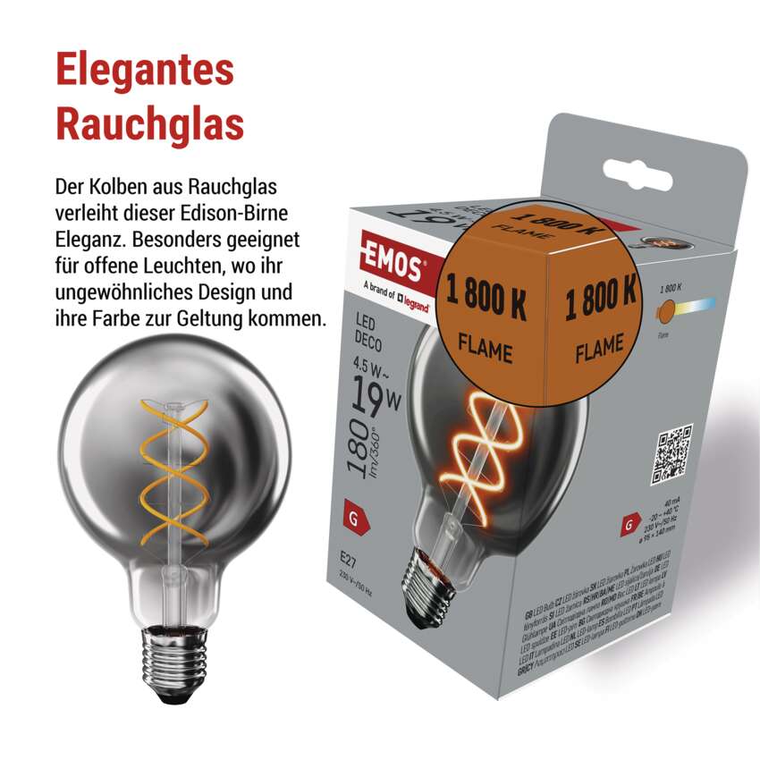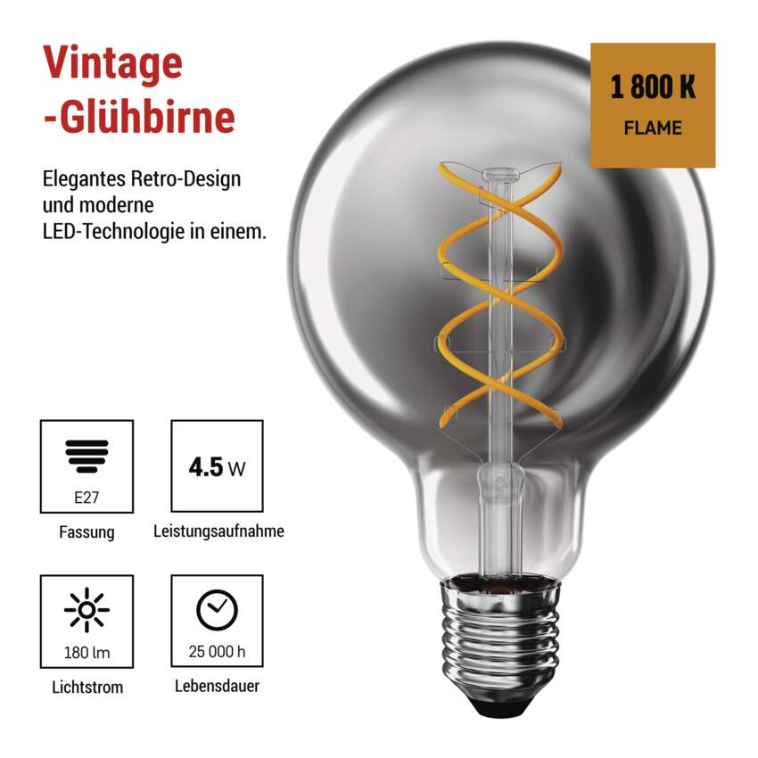 LED Lampe DECO SMOKED G95 / E27 / 4,5 W (19 W) / 180 lm / flame