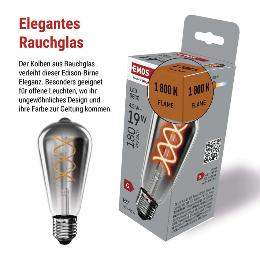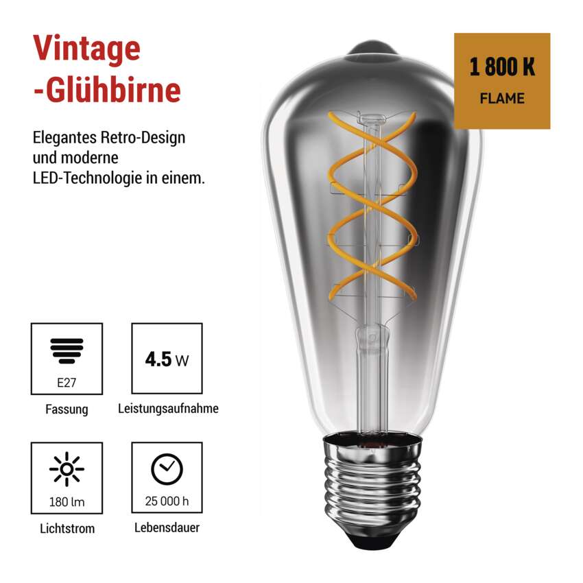 LED Lampe DECO SMOKED ST64 / E27 / 4,5 W (19 W) / 180 lm / flame