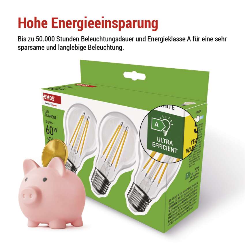 LED Lampe Filament A60 A CLASS/ E27 / 3,8 W (60 W) / 806 lm / Neutralweiß