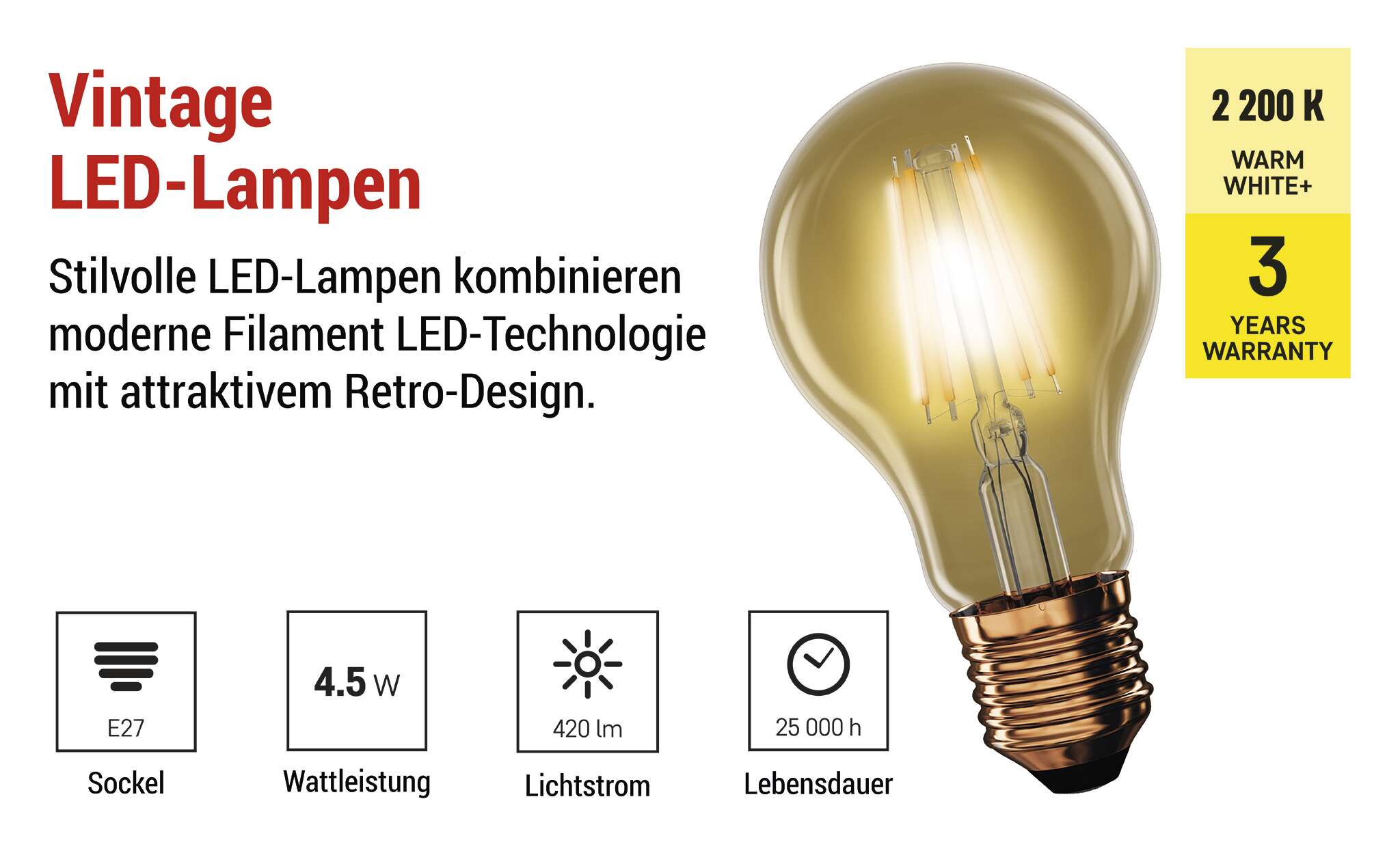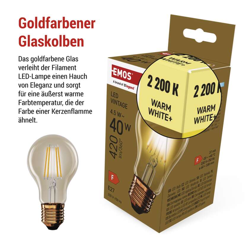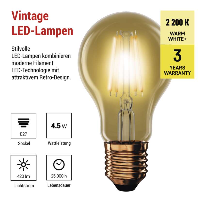 LED Lampe Vintage A60 / E27 / 4,5 W (40 W) / 420 lm / Warmweiß