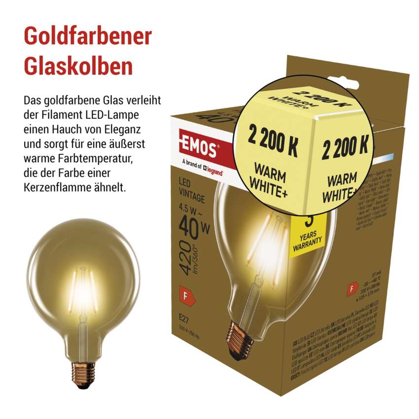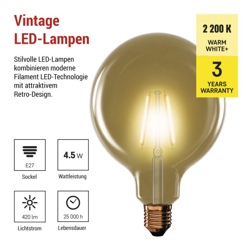 LED Lampe Vintage G125 / E27 / 4,5 W (40 W) / 420 lm / Warmweiß