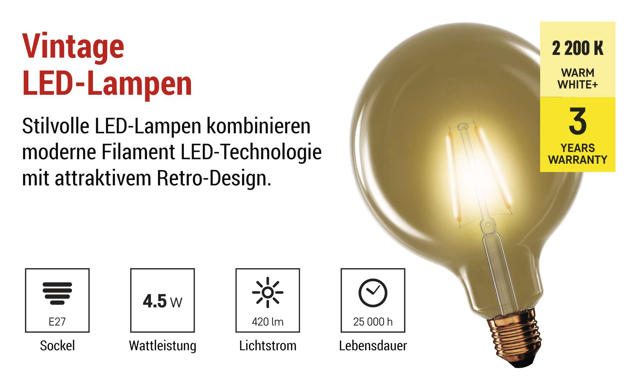 LED Lampe Vintage G95 / E27 / 4,5 W (40 W) / 420 lm / Warmweiß