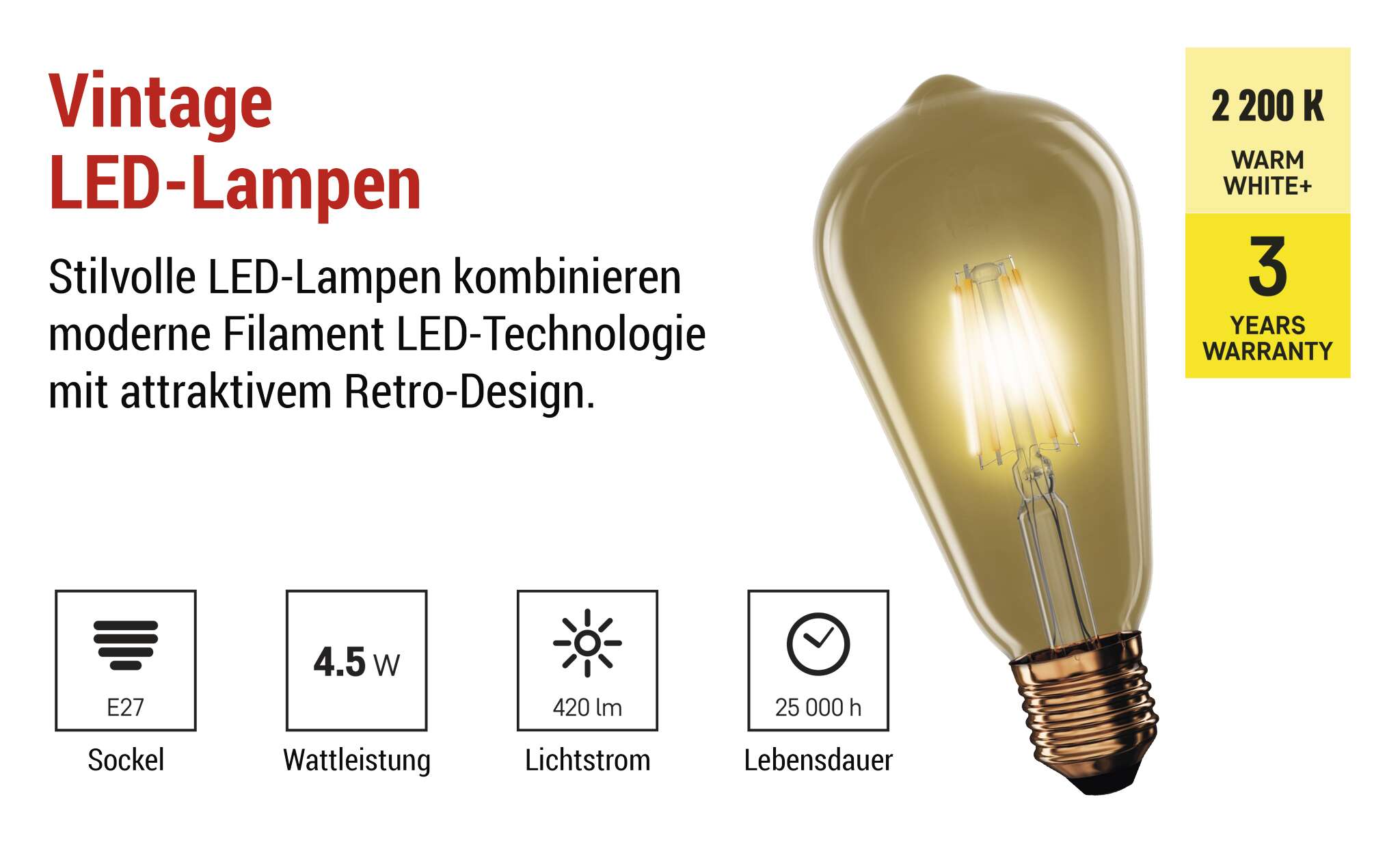 LED Lampe Vintage ST64 / E27 / 4,5 W (40 W) / 420 lm / Warmweiß