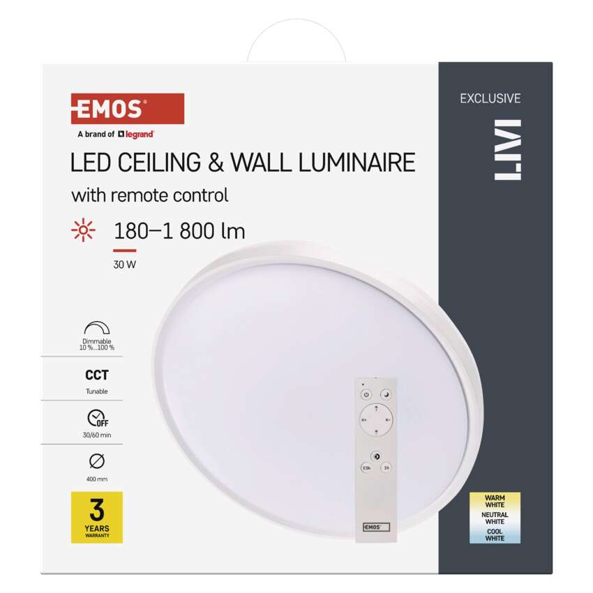Powered by Smartsupp LED-Leuchte LIVI 40 cm, 30 W, warm-kaltweiß, dimmbar mit Fernbedienung | EMOS DE