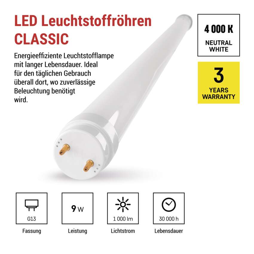 LED-Leuchtstofflampe T8 9 W 60 cm neutralweiß
