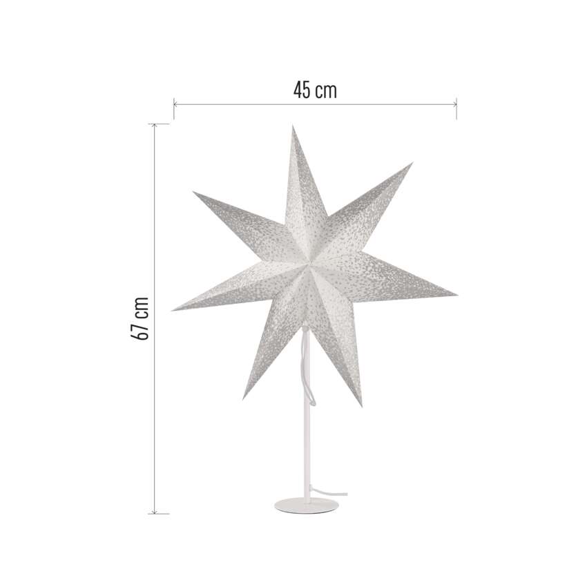 Wie schafft man die richtige Weihnachtsstimmung und ein gemütliches Zuhause? Ein Papierstern auf einem Ständer hilft dir dabei und sieht in jedem Interieur auf einem Tisch, einer Kommode oder einer Fensterbank toll aus. Der Stern hat ein 1,6m langes Stromkabel und dank der E14-Glühbirnenfassung ist es dir überlassen, welche Glühbirnenfarbe du verwendest. Wenn du zum Beispiel einen Stern in weiß wählst und eine Glühbirne mit warmweißer Lichtfarbe einsetzt, wird er in einem schönen goldenen Licht erstrahlen, das durch die kleinen Löcher im Stern scheint. Der Vorteil dieser Dekoration ist auch seine Faltbarkeit, man kann den Stern einfach durch Anziehen der Schnur falten.
