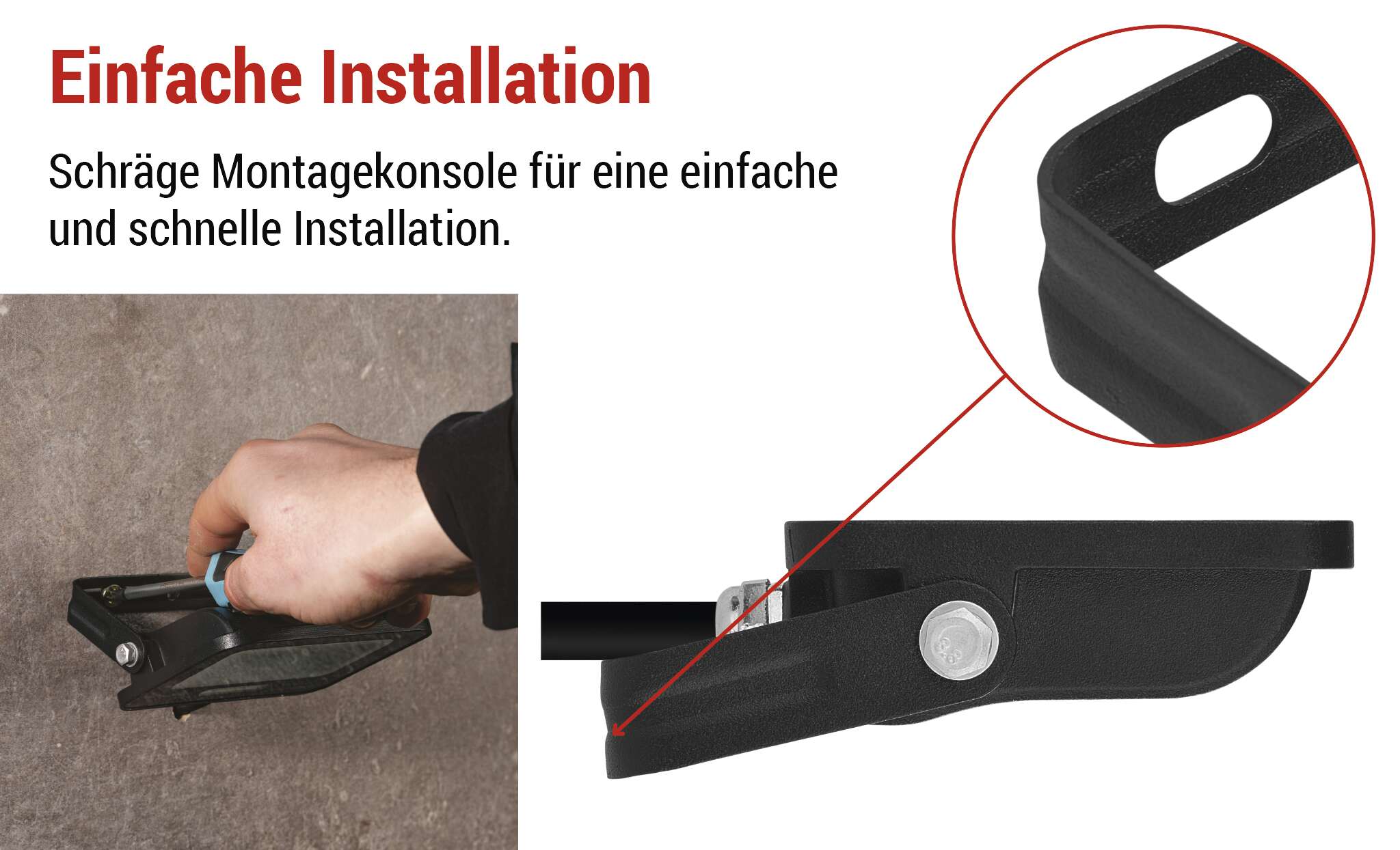 Die GLARO Reflektoren sind mit einer praktischen schrägen Halterung ausgestattet, die eine schnelle und bequeme Montage an einer Wand, Fassade oder einem anderen Untergrund ermöglicht. Durch die Möglichkeit, den Winkel der Leuchte genau nach Bedarf einzustellen, können Sie das Licht dorthin lenken, wo es am meisten benötigt wird, ohne dass komplizierte Bohrungen oder Einstellungen erforderlich sind. Die einfache Installation spart Zeit und Mühe und macht GLARO zur idealen Wahl für Hausinstallationen.