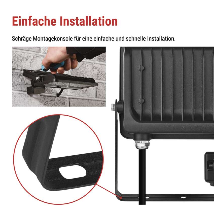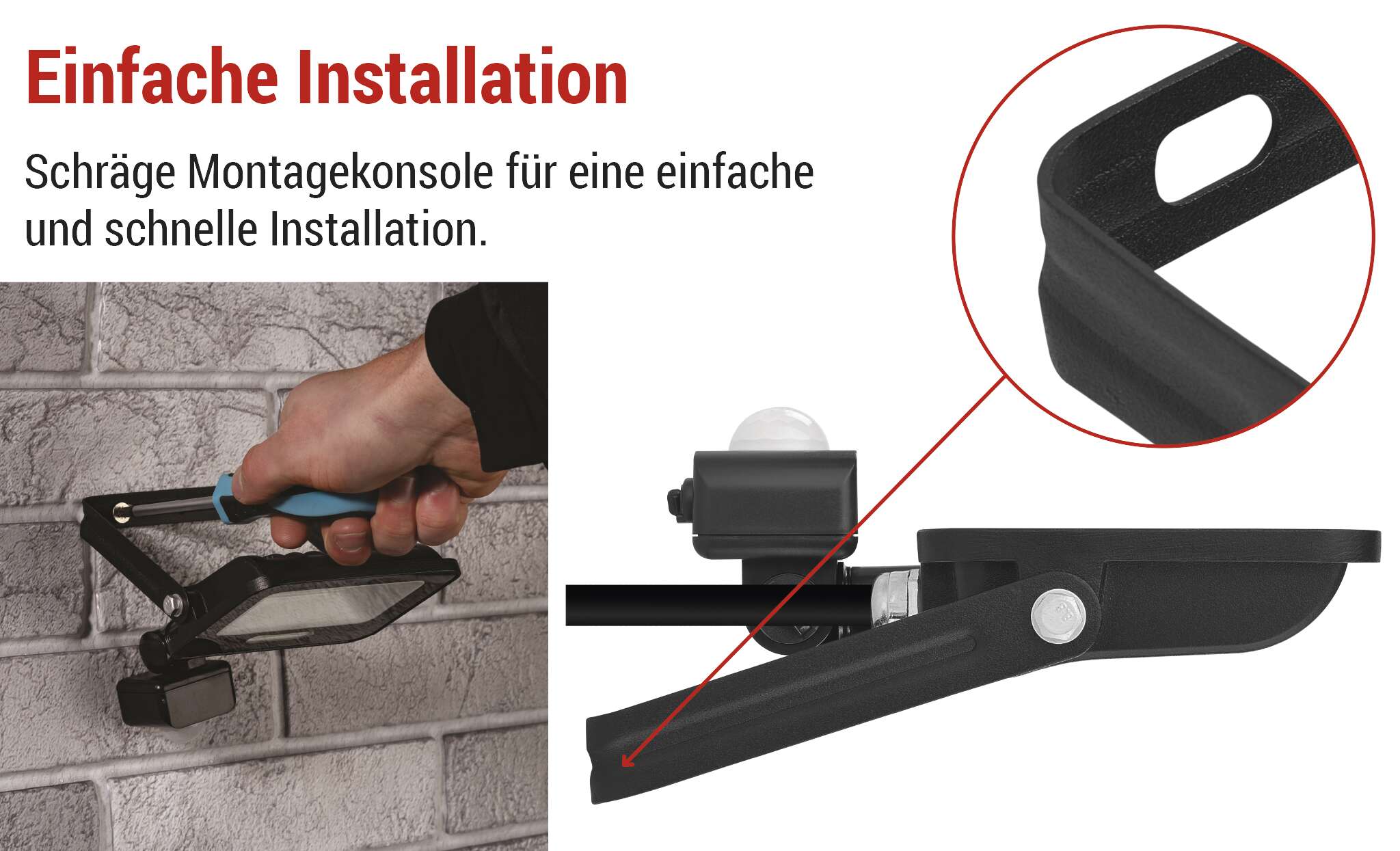 Die GLARO PIR-Reflektoren sind mit einer praktischen Winkelhalterung ausgestattet, die eine schnelle und bequeme Installation an einer Wand, Fassade oder einem anderen Untergrund ermöglicht. Durch die Möglichkeit, den Beleuchtungswinkel genau nach Bedarf einzustellen, können Sie das Licht dorthin lenken, wo es am meisten benötigt wird, ohne dass komplizierte Bohrungen oder Einstellungen erforderlich sind. Die einfache Installation spart Zeit und Mühe und macht GLARO zur idealen Wahl für Hausinstallationen.