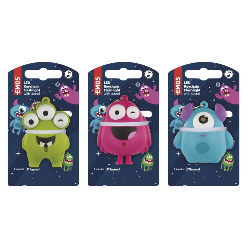 LED-Schlüsselanhänger – Monster mit Sound, 18 Stück, Displaybox