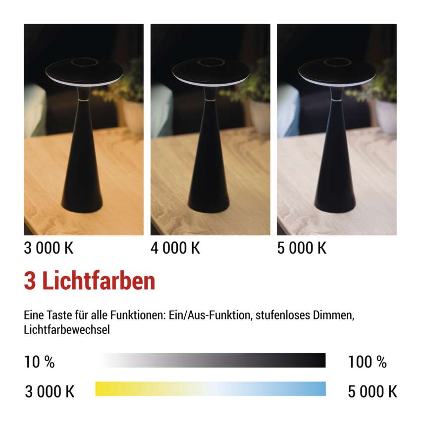 Entdecken Sie die perfekte Kombination aus Eleganz und Funktionalität mit unserer JASON Tischleuchte. Das stilvolle, mattschwarze Design und die Dimmoption schaffen das perfekte Ambiente für jeden Schreibtisch oder Nachttisch. Dank ihrer Wasserbeständigkeit ist diese Lampe auch ideal für den Einsatz im Freien, zum Beispiel auf Ihrer Veranda. Mit einer Auswahl an warm-, neutral- und kaltweißen Lichtfarben finden Sie immer die richtige Beleuchtung.