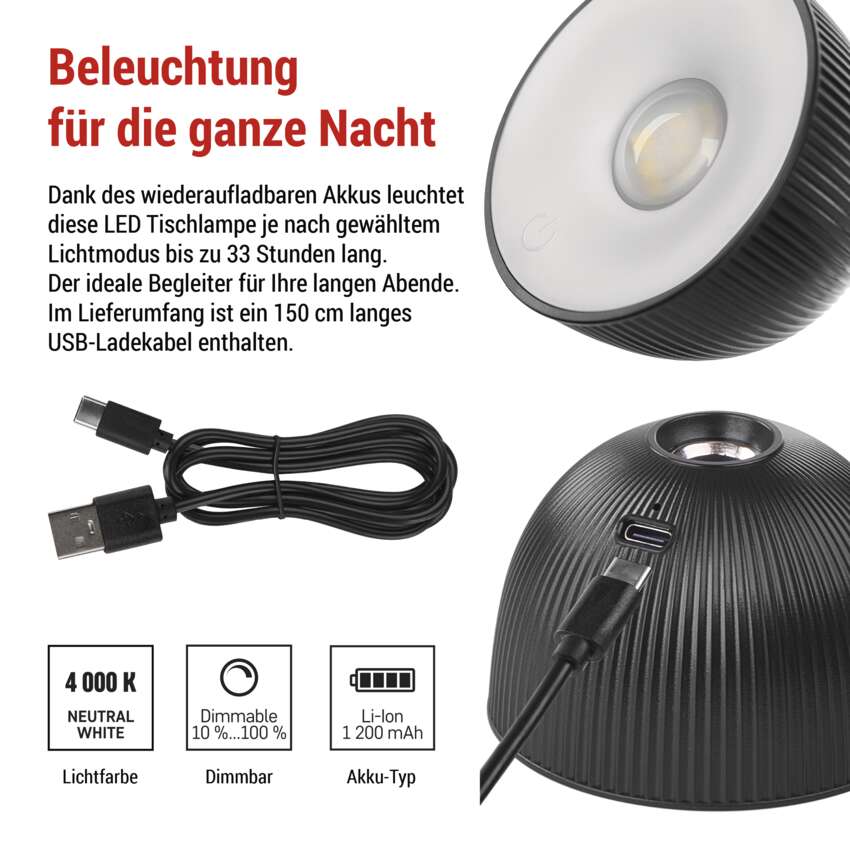 LED Schreibtischlampe SOPHIE, wiederaufladbar, schwarz